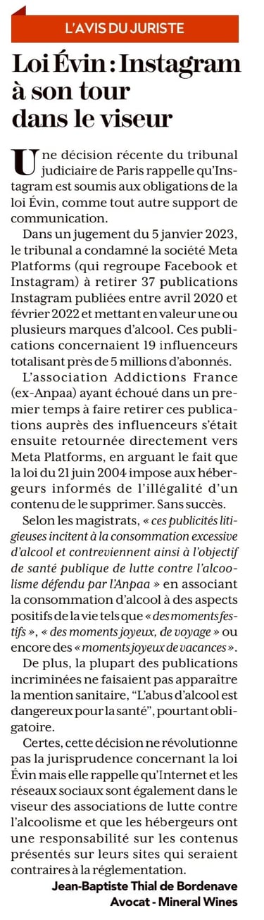 La loi évolue régulièrement, en phase avec les évolutions sociétales. Aujourd’hui, en dépit de sa complexité et des difficultés d’interprétation qu’elle pose quotidiennement aux opérateurs, la loi Évin est relativement équilibrée, notamment grâce à la clarification de 2016. Cette dernière a en effet permis de sécuriser l’information oenotouristique et journalistique en la distinguant de la publicité.